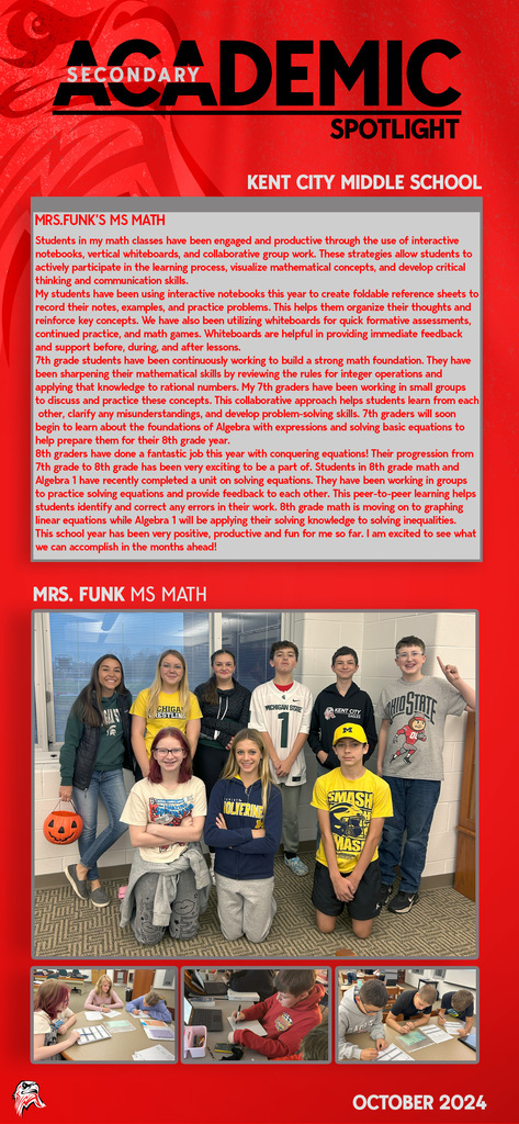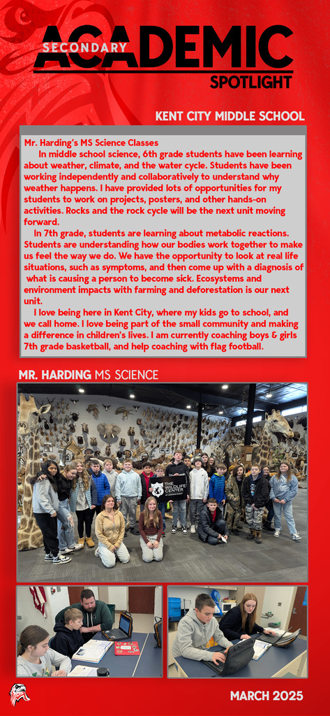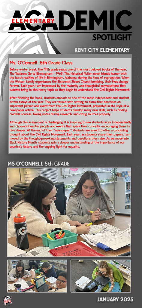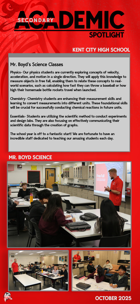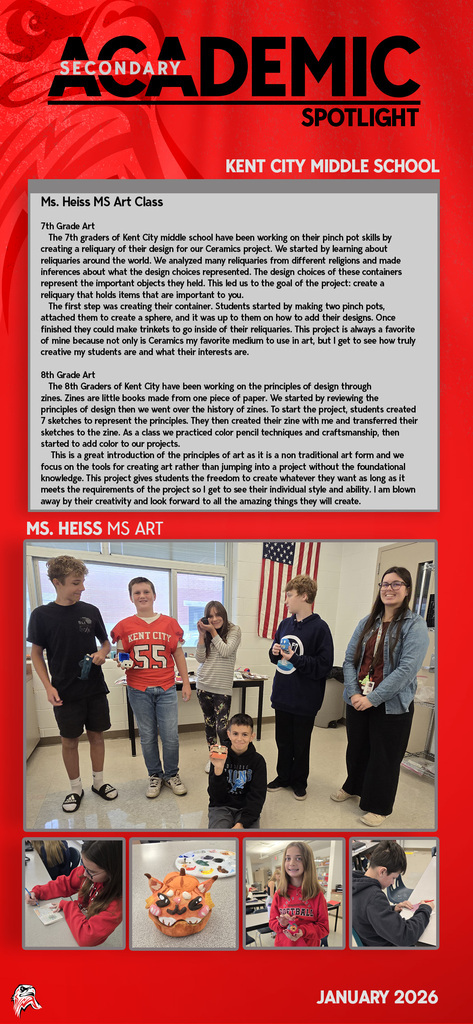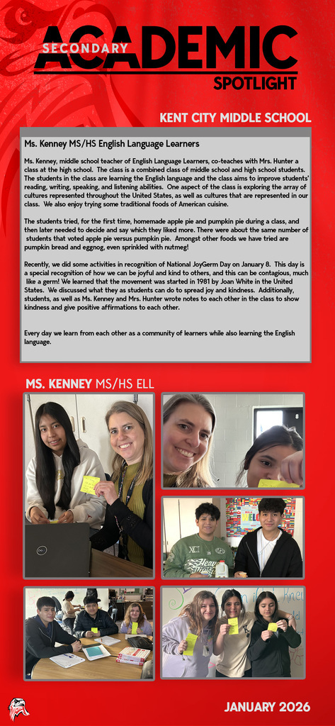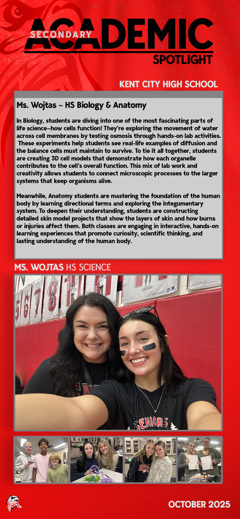 Every day you will find amazing work being done by our students and staff at Kent City Community Schools. This Academic Spotlight page will show you what is taking place in our classrooms.