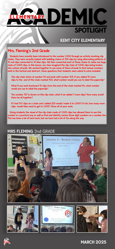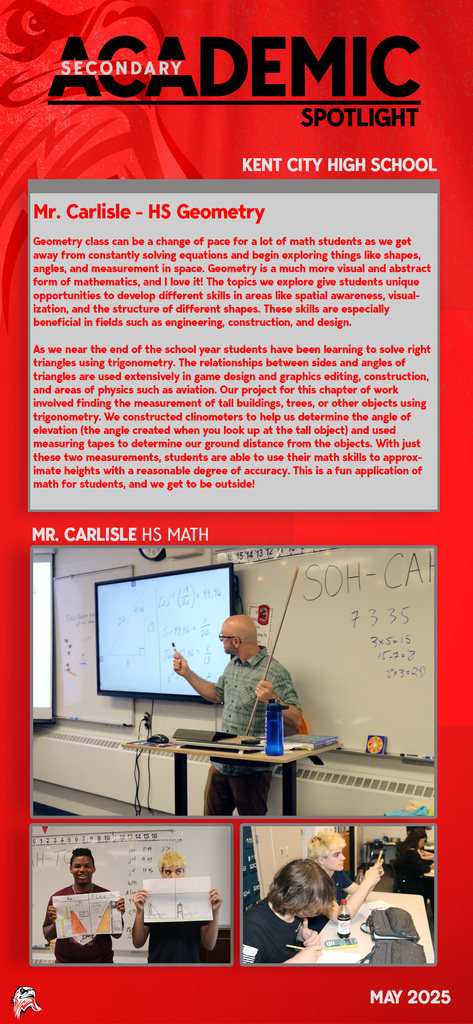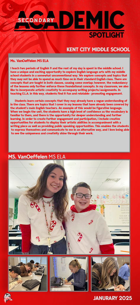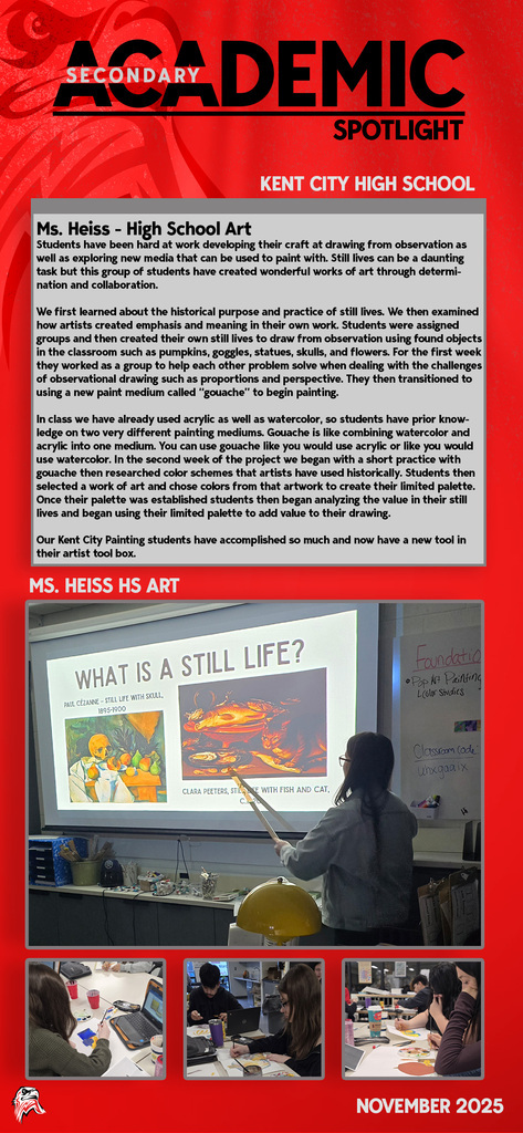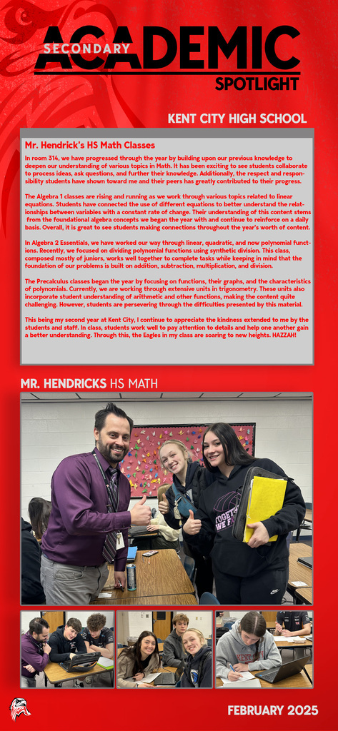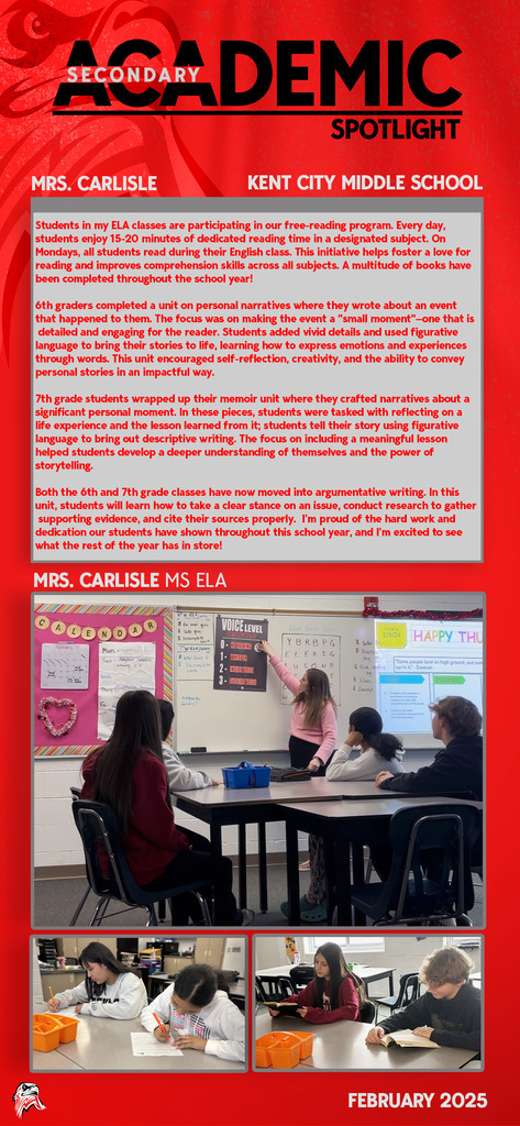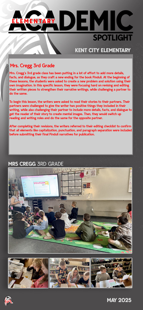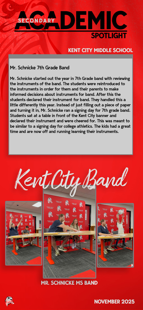Every day you will find amazing work being done by our students and staff at Kent City Community Schools. This Academic Spotlight page will show you what is taking place in our classrooms.